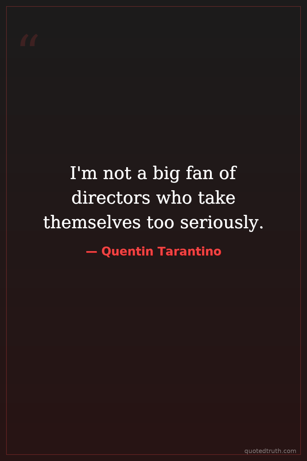 I'm not a big fan of directors who take themselves too seriously.