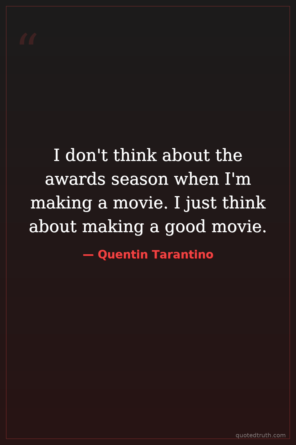 I don't think about the awards season when I'm making a movie. I just think about making a good movie.