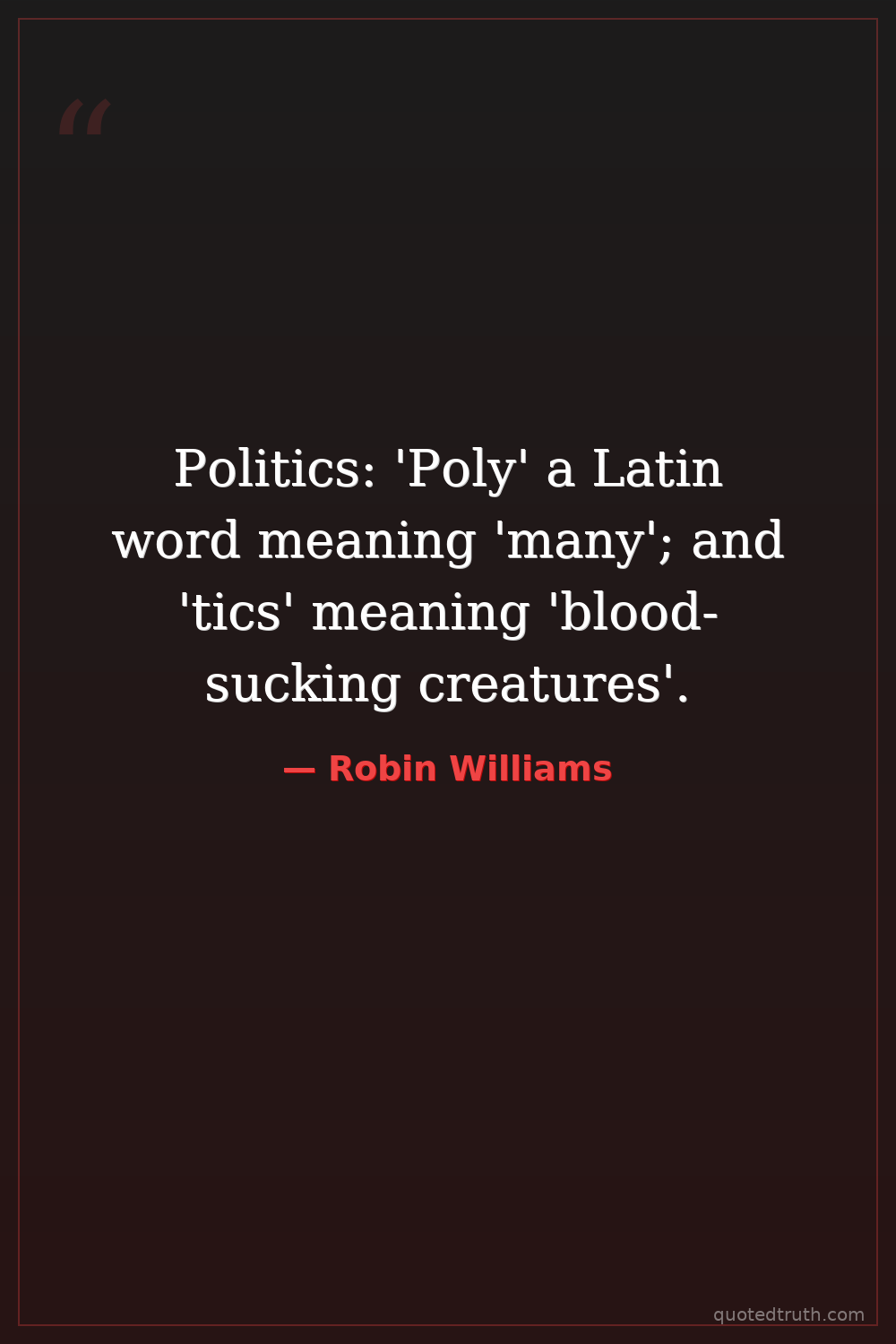 Politics: 'Poly' a Latin word meaning 'many'; and 'tics' meaning 'blood-sucking creatures'.