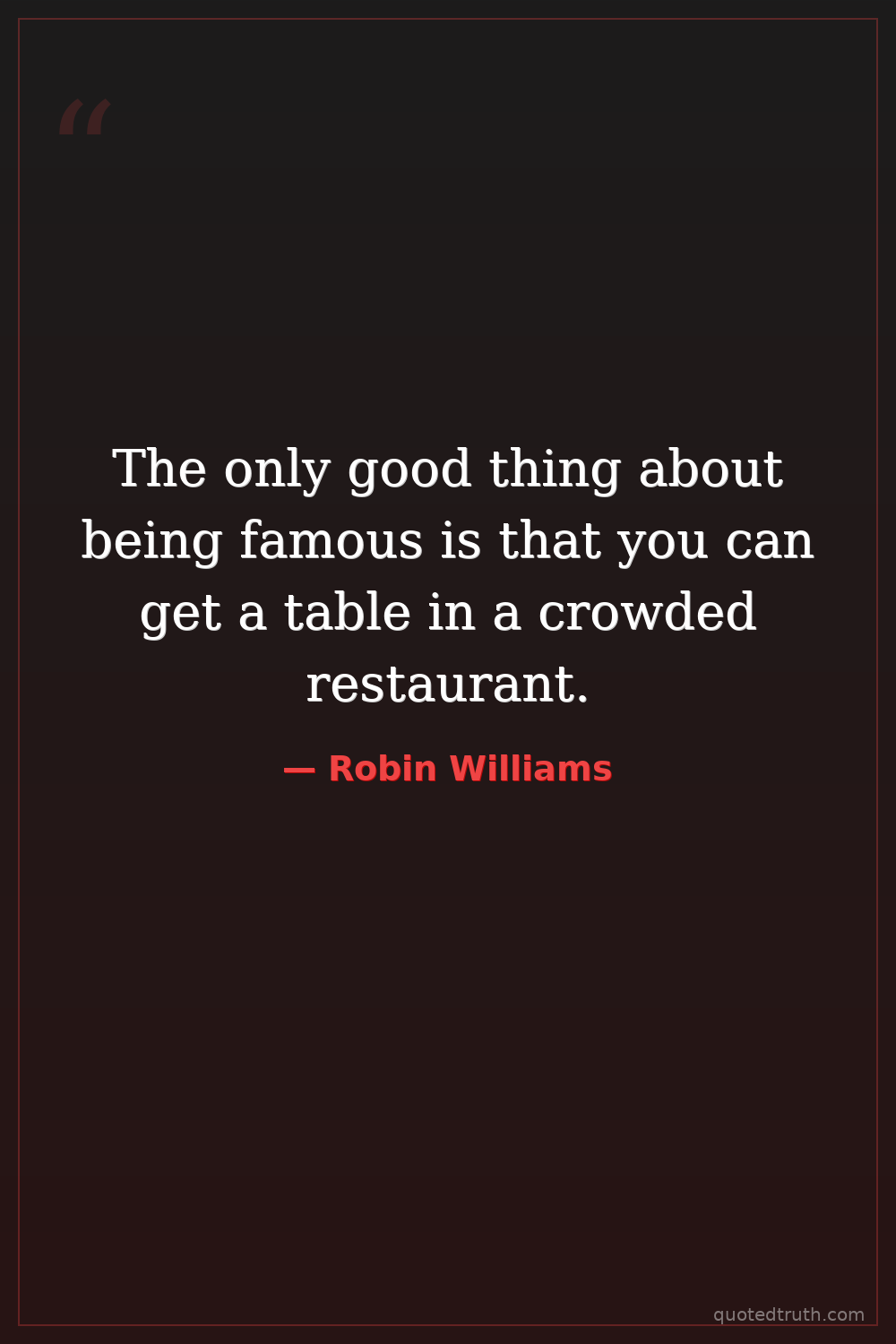 The only good thing about being famous is that you can get a table in a crowded restaurant.