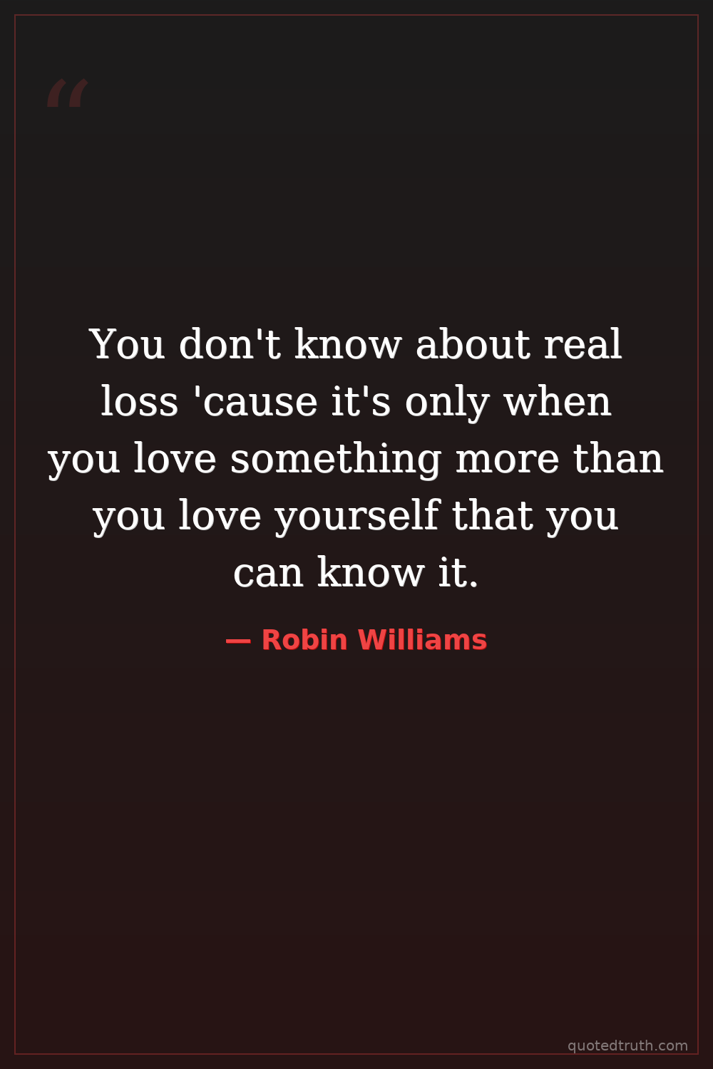 You don't know about real loss 'cause it's only when you love something more than you love yourself that you can know it.