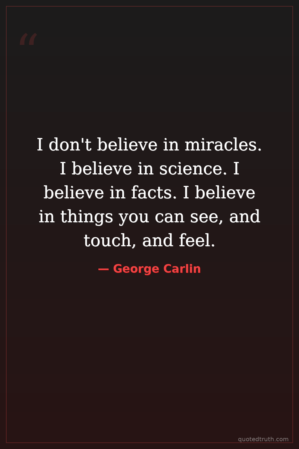 I don't believe in miracles. I believe in science. I believe in facts. I believe in things you can see, and touch, and feel.