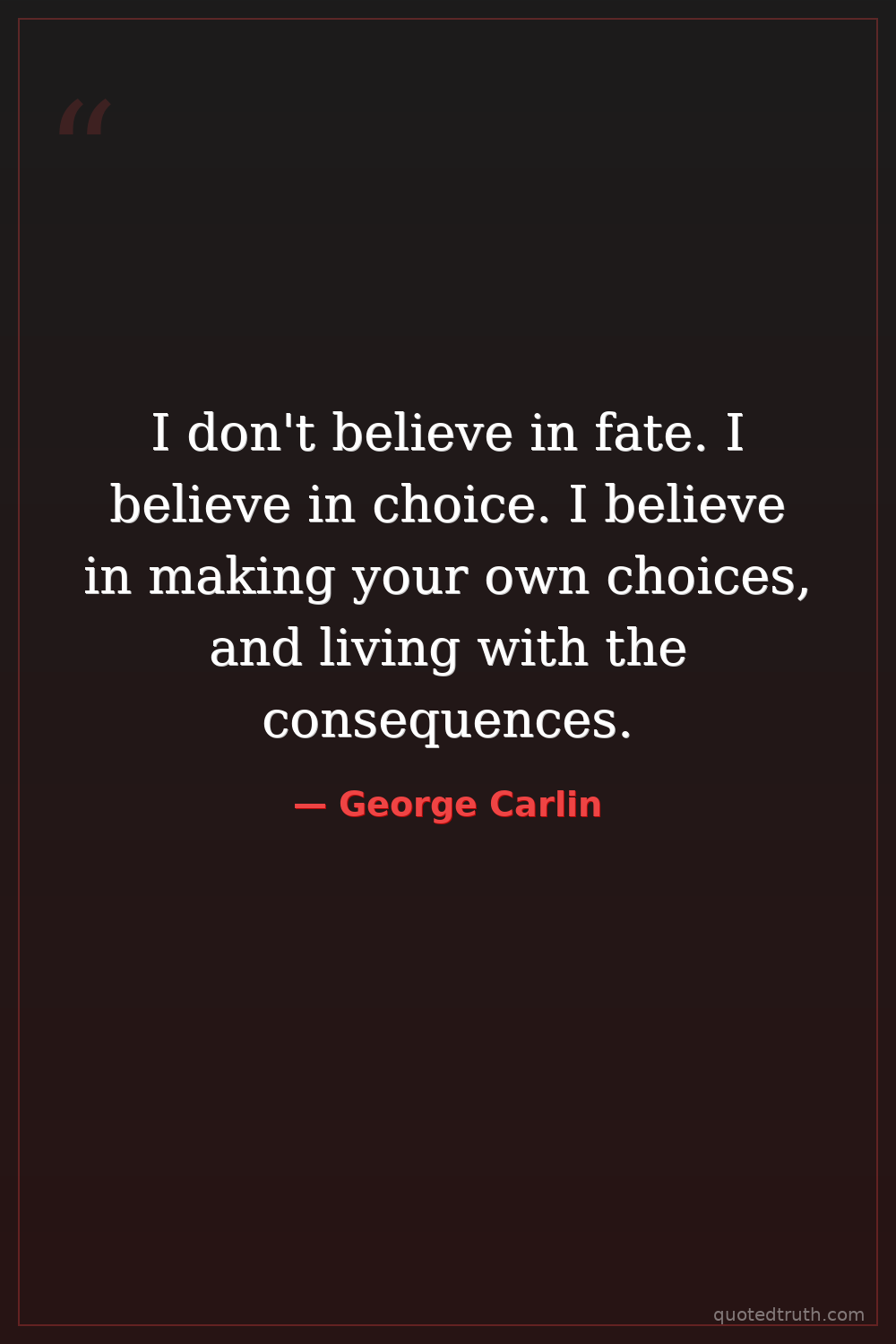 I don't believe in fate. I believe in choice. I believe in making your own choices, and living with the consequences.