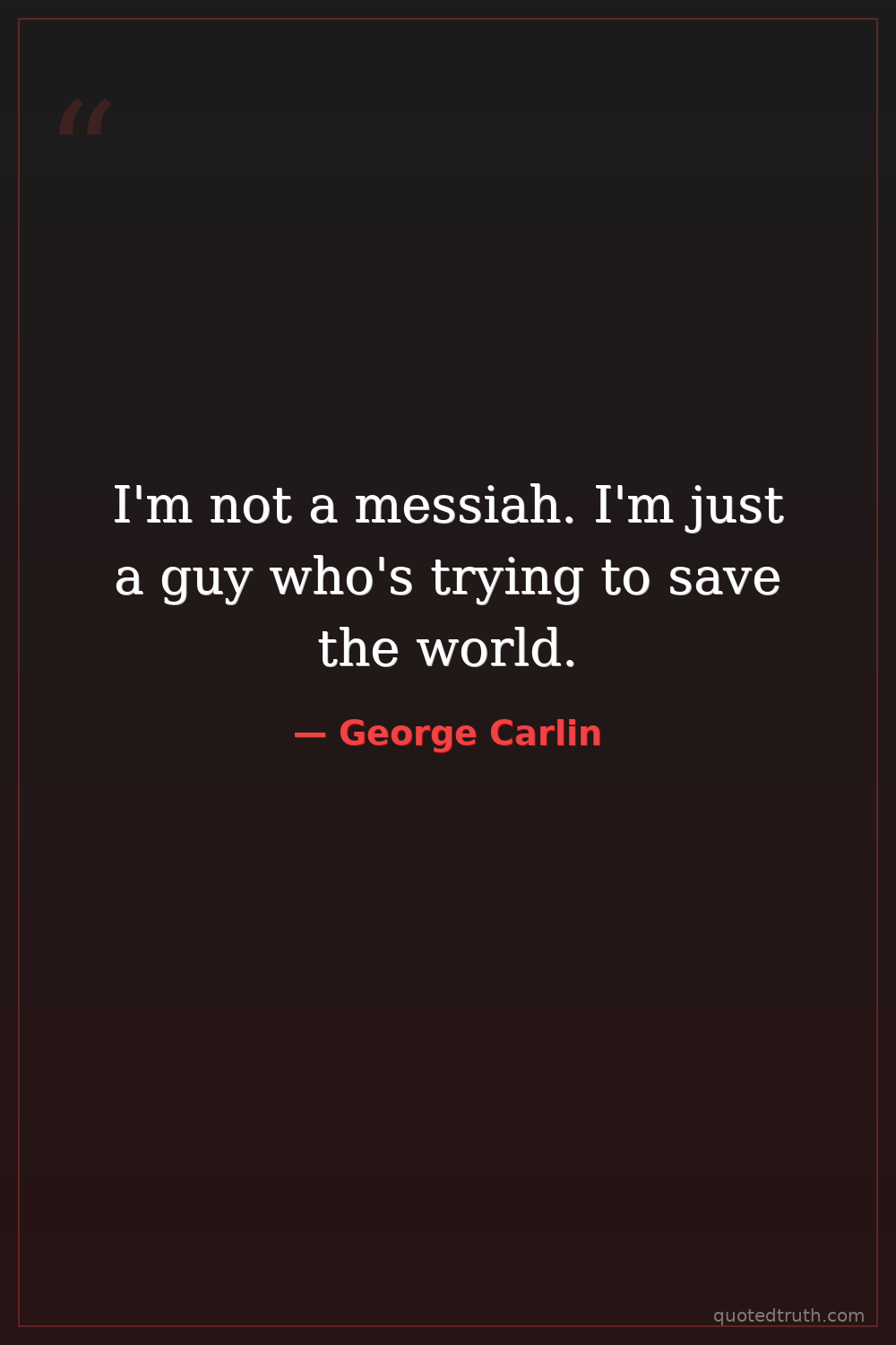 I'm not a messiah. I'm just a guy who's trying to save the world.