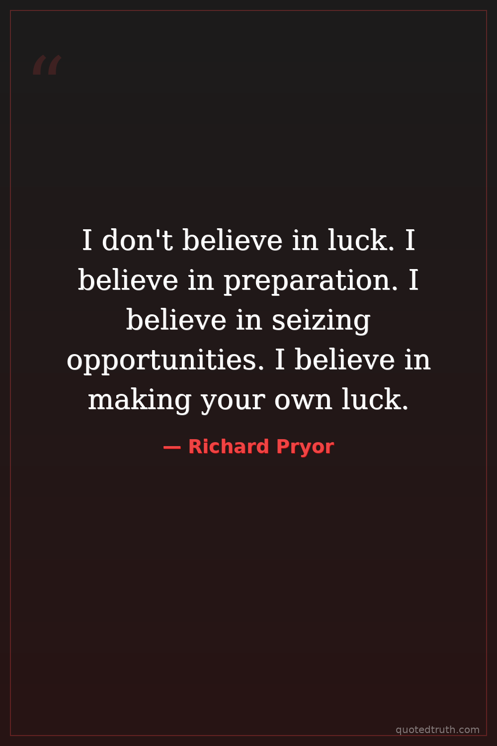I don't believe in luck. I believe in preparation. I believe in seizing opportunities. I believe in making your own luck.