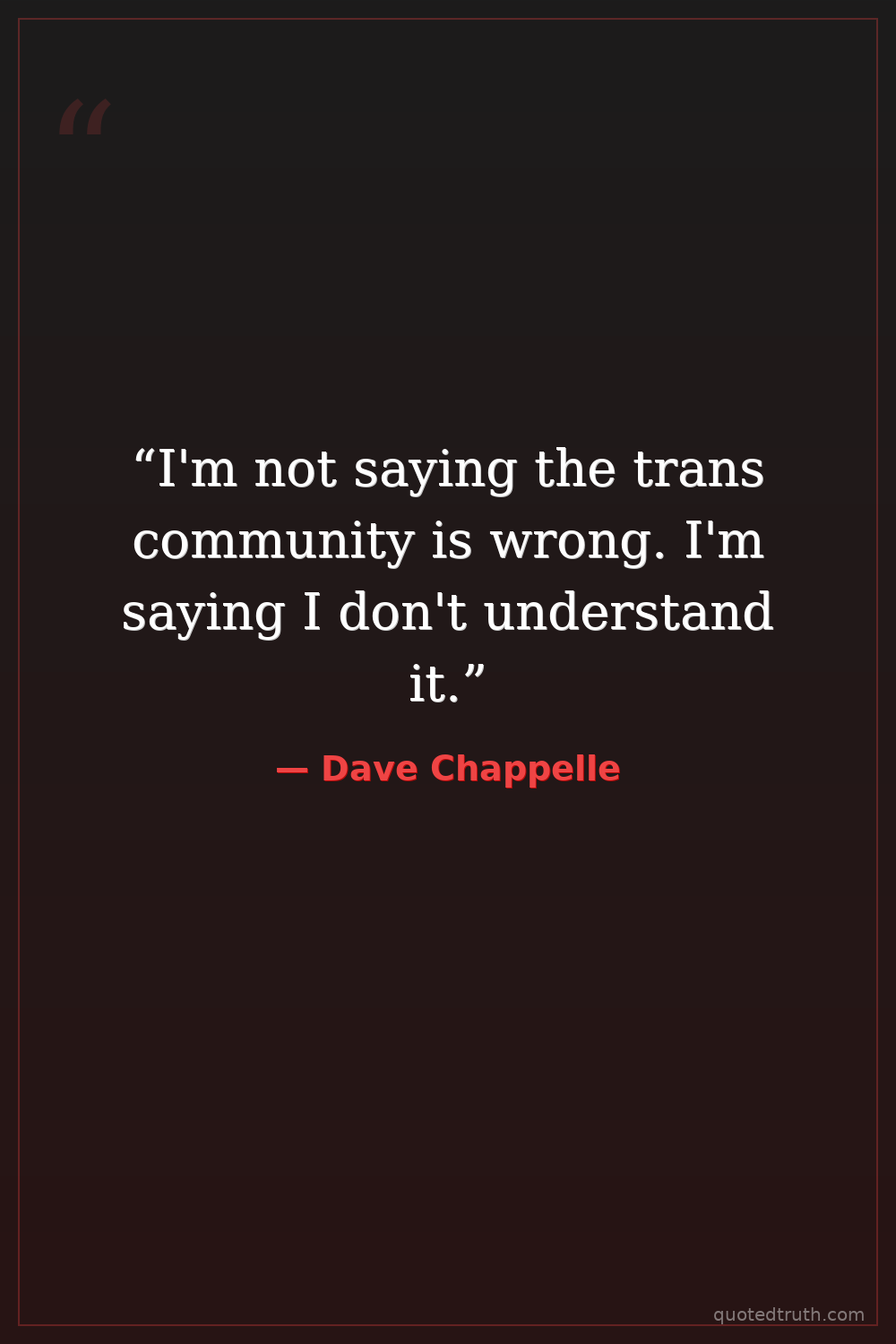 “I'm not saying the trans community is wrong. I'm saying I don't understand it.”