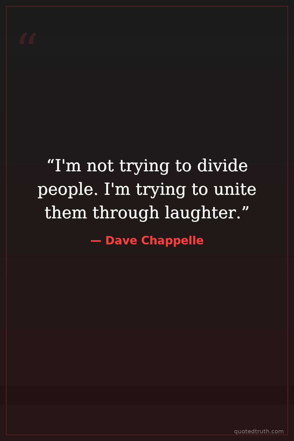 “I'm not trying to divide people. I'm trying to unite them through laughter.”