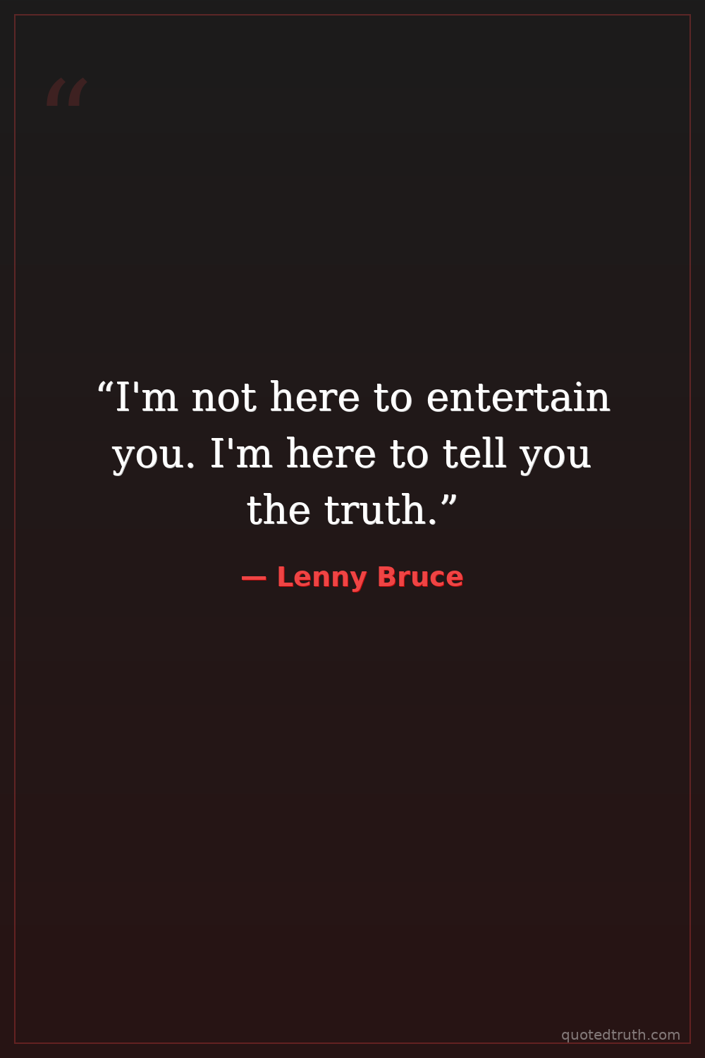 “I'm not here to entertain you. I'm here to tell you the truth.”