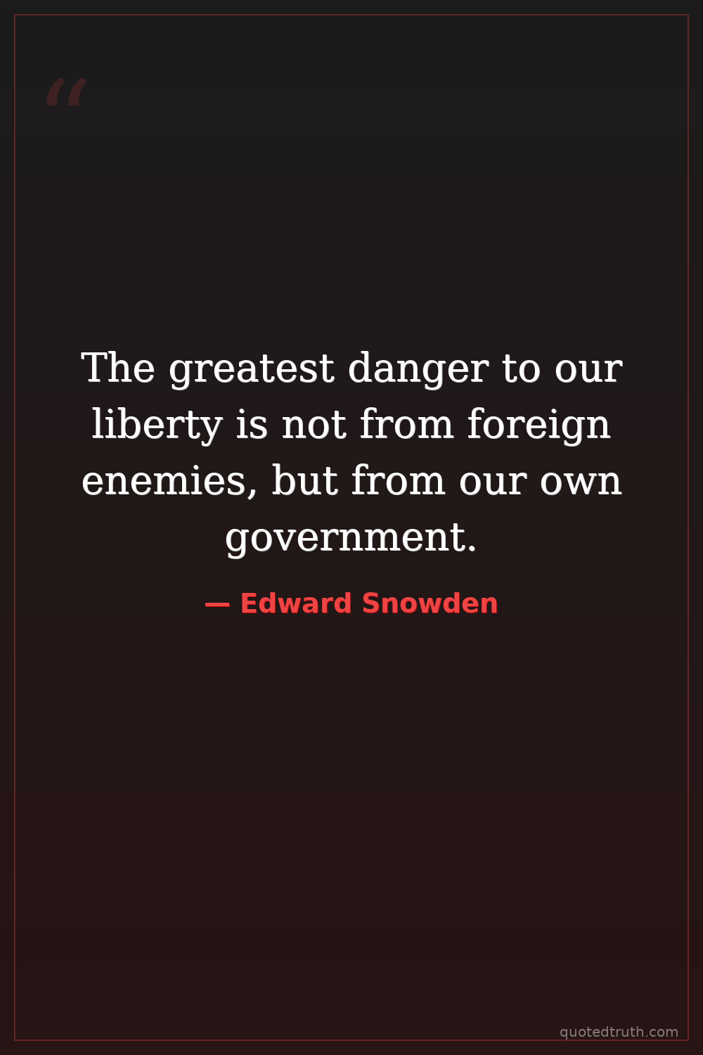 The greatest danger to our liberty is not from foreign enemies, but from our own government.