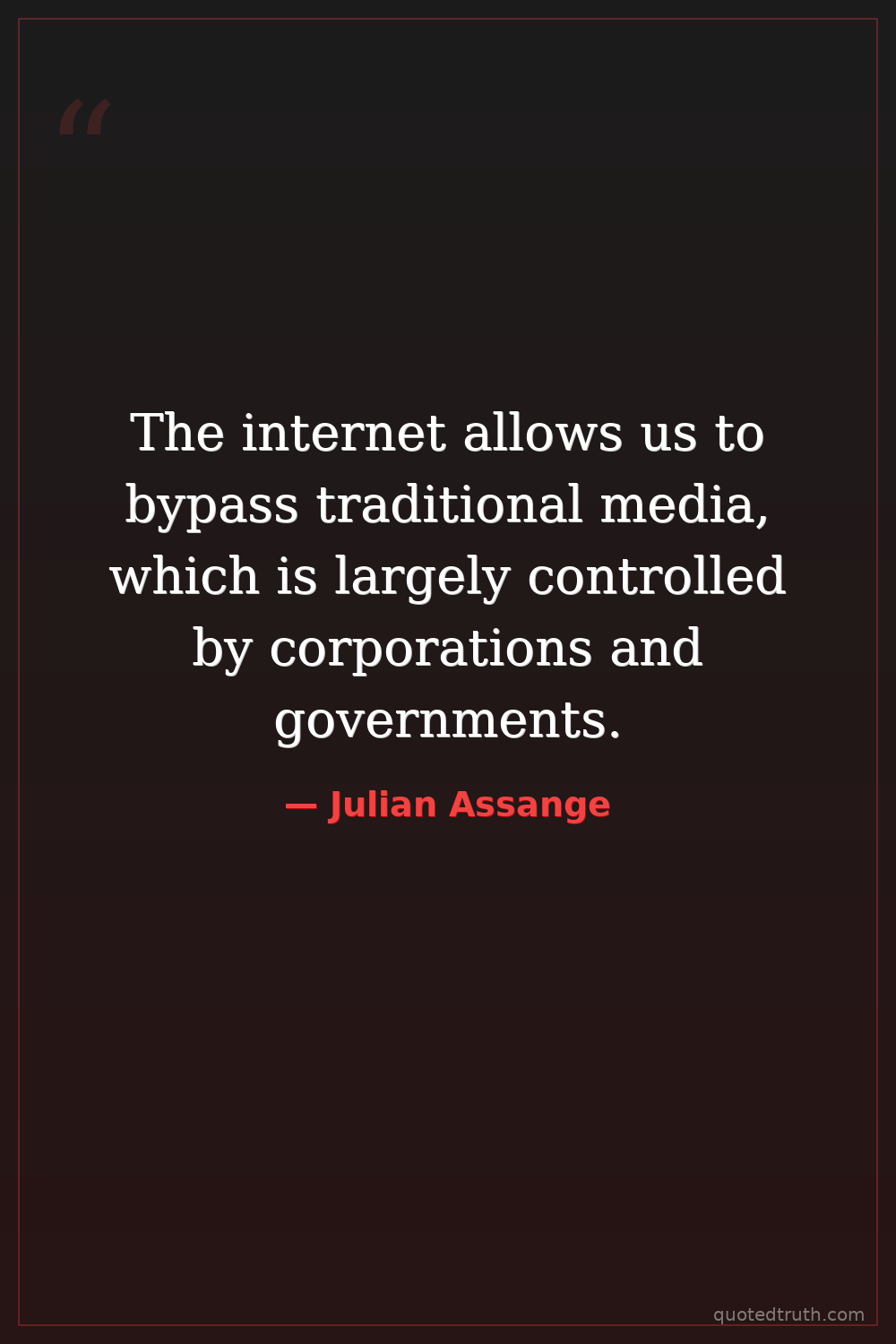 The internet allows us to bypass traditional media, which is largely controlled by corporations and governments.