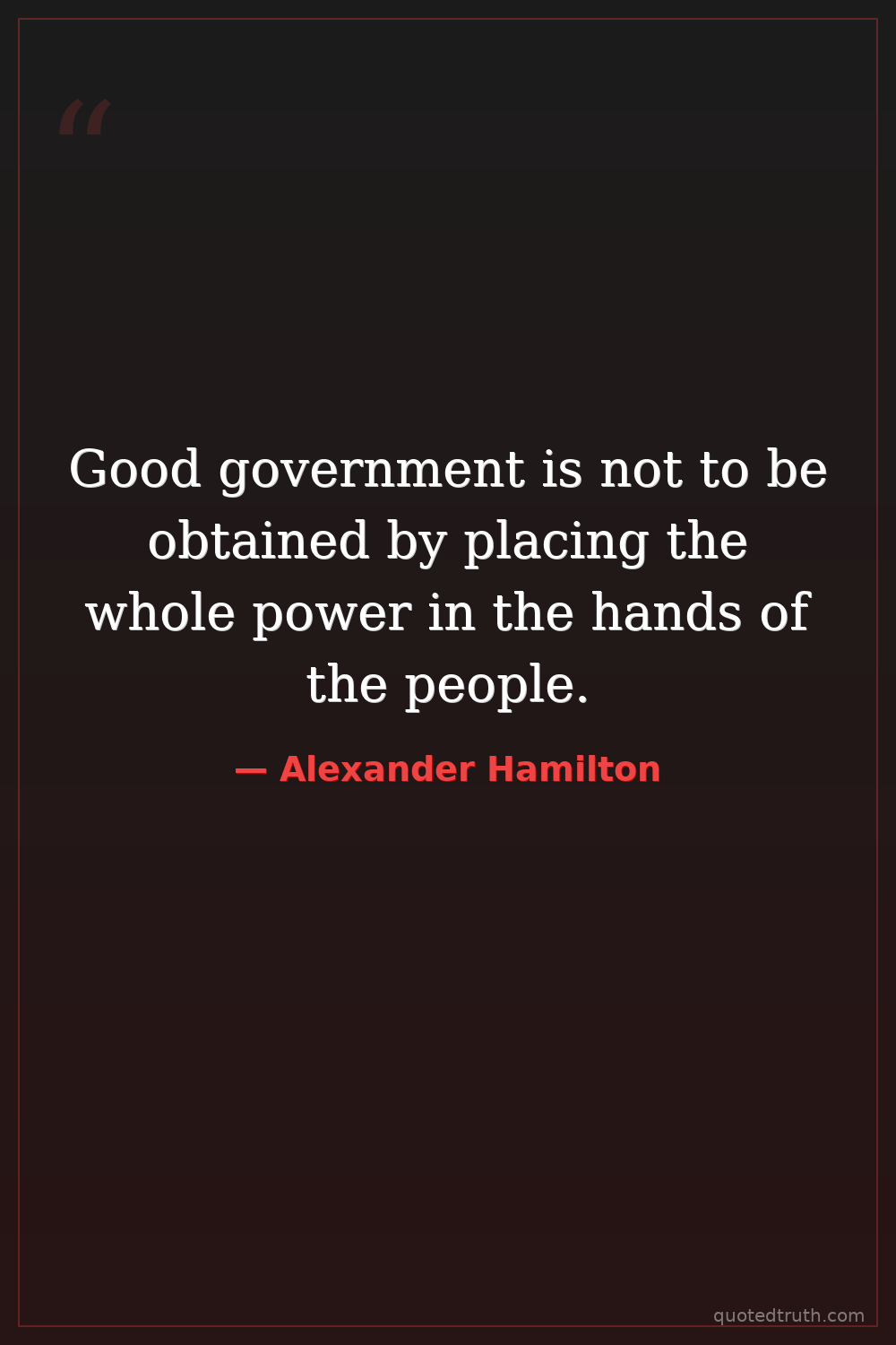 Good government is not to be obtained by placing the whole power in the hands of the people.