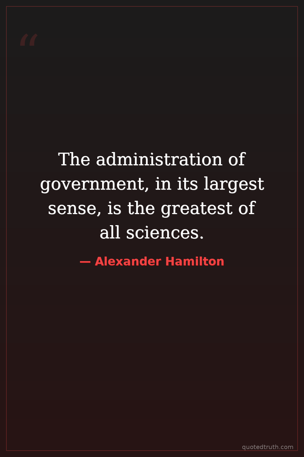 The administration of government, in its largest sense, is the greatest of all sciences.