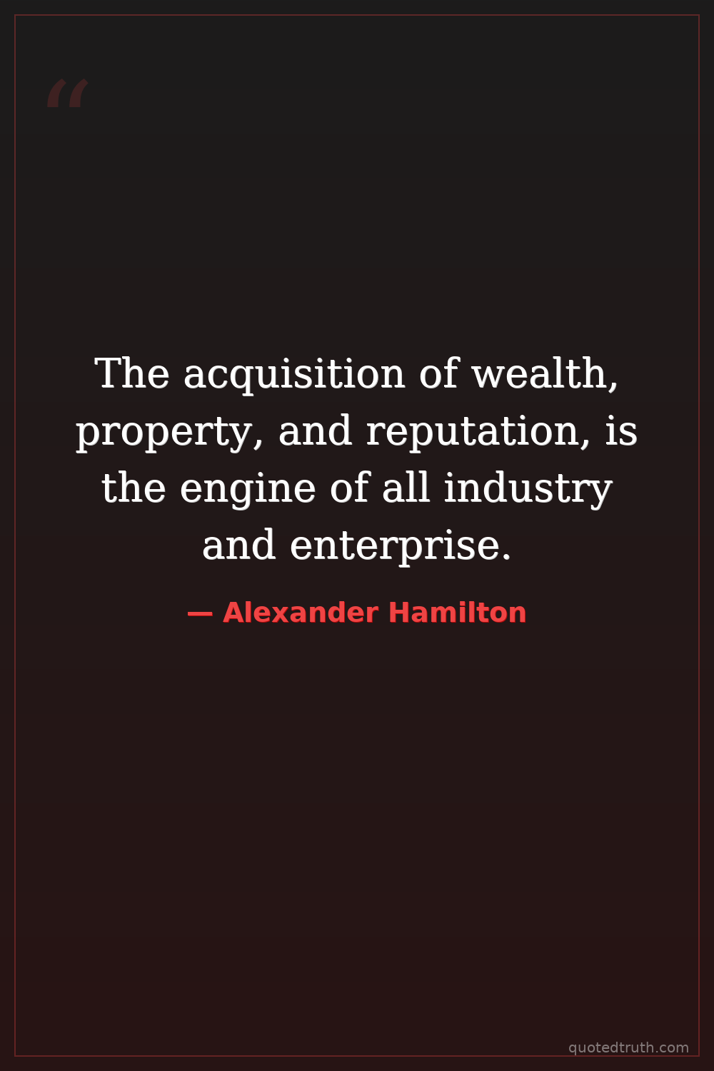 The acquisition of wealth, property, and reputation, is the engine of all industry and enterprise.