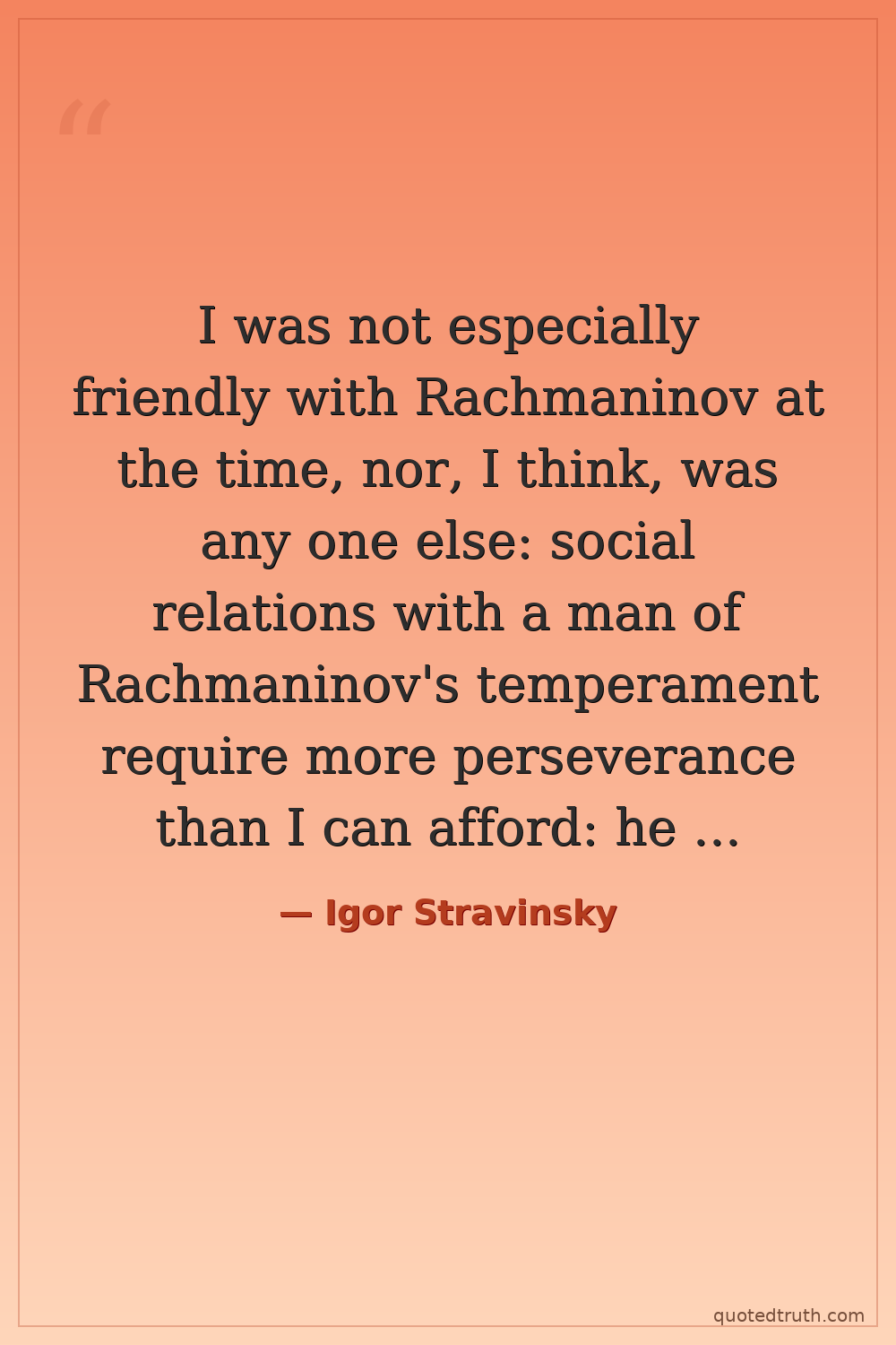 I was not especially friendly with Rachmaninov at the time, nor, I think, was any one else: social relations with a man of Rachmaninov's temperament require more perseverance than I can afford: he was merely bringing me honey.