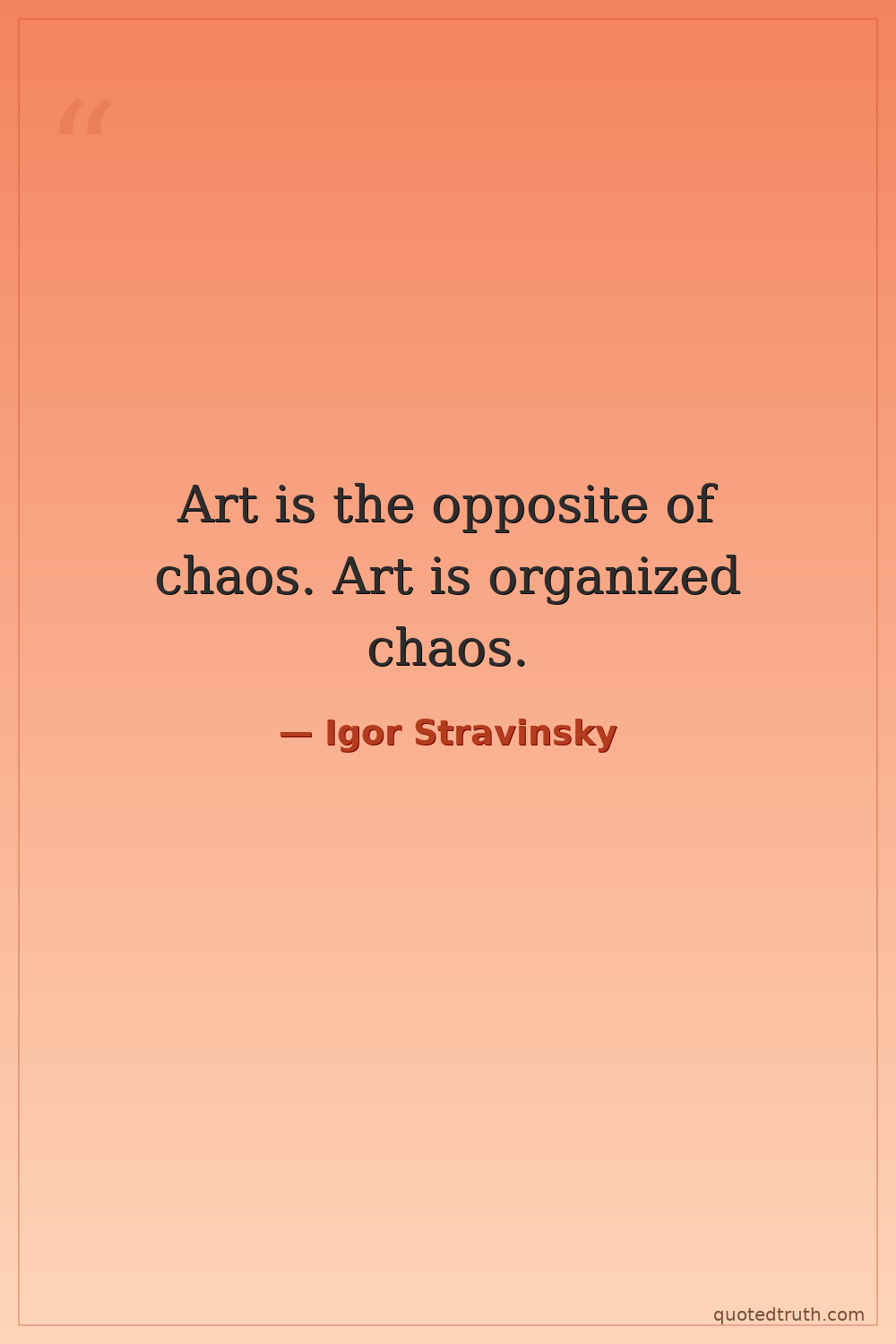 Art is the opposite of chaos. Art is organized chaos.