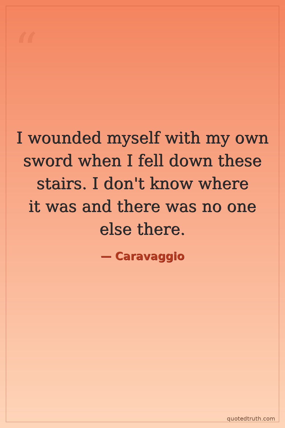I wounded myself with my own sword when I fell down these stairs. I don't know where it was and there was no one else there.