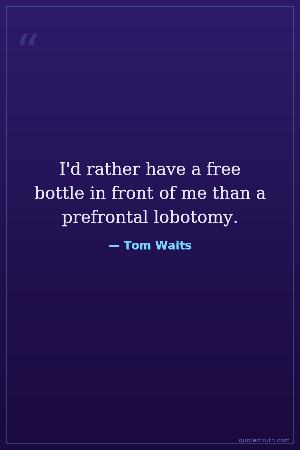 I'd rather have a free bottle in front of me than a prefrontal lobotomy.