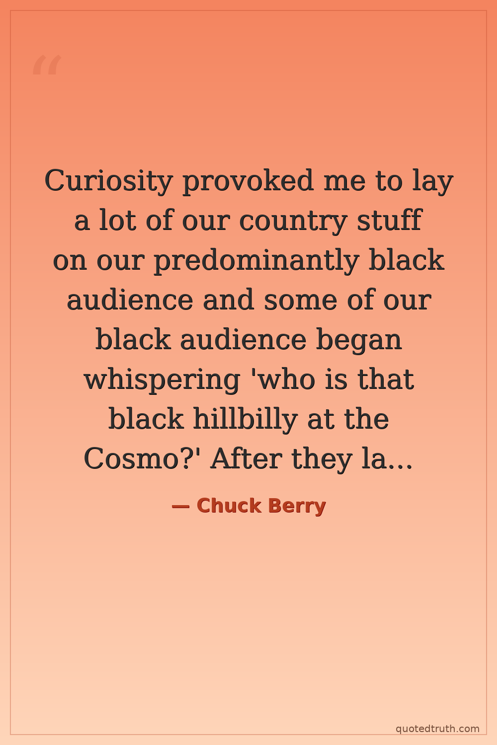 Curiosity provoked me to lay a lot of our country stuff on our predominantly black audience and some of our black audience began whispering 'who is that black hillbilly at the Cosmo?' After they laughed at me a few times they began requesting the hillbilly stuff and enjoyed dancing to it.