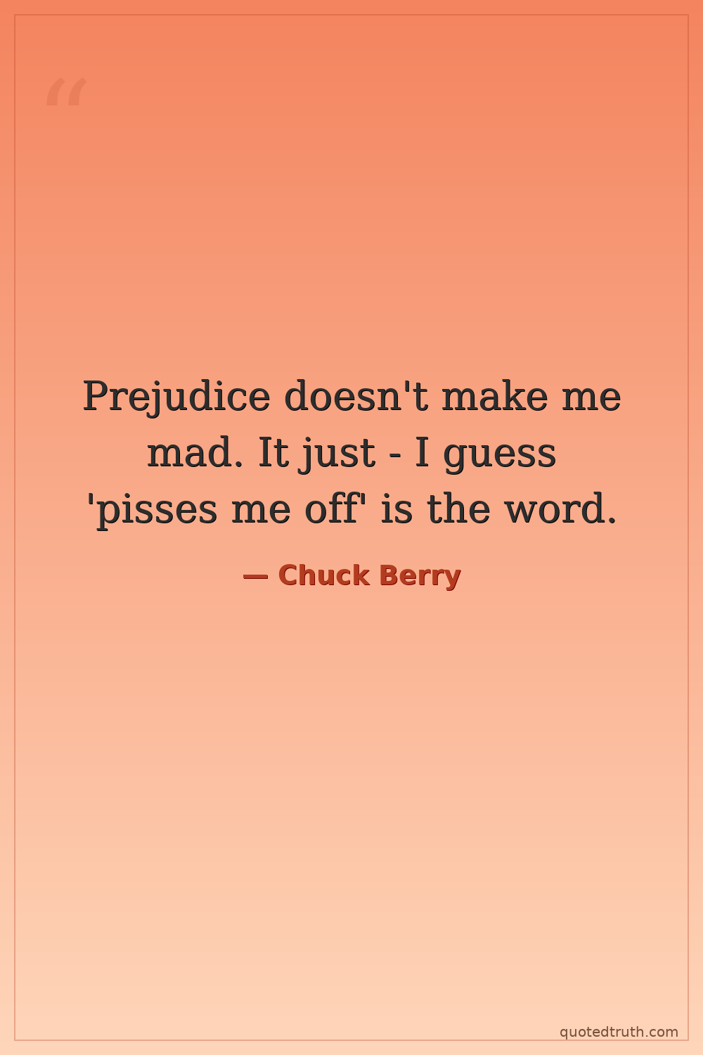 Prejudice doesn't make me mad. It just - I guess 'pisses me off' is the word.