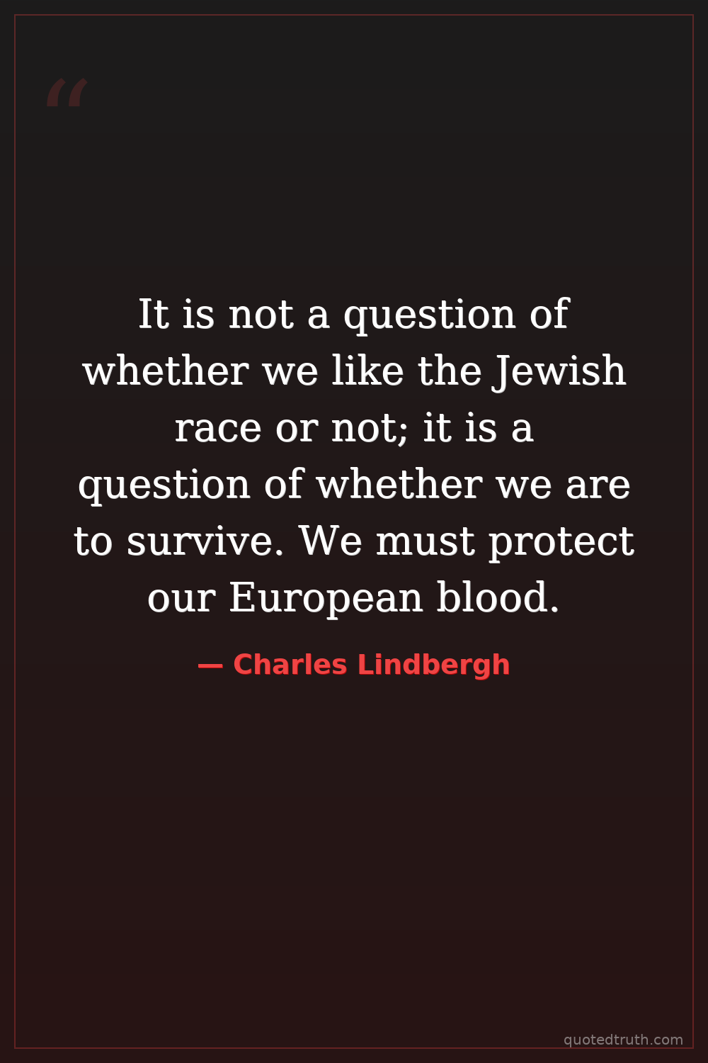 It is not a question of whether we like the Jewish race or not; it is a question of whether we are to survive. We must protect our European blood.