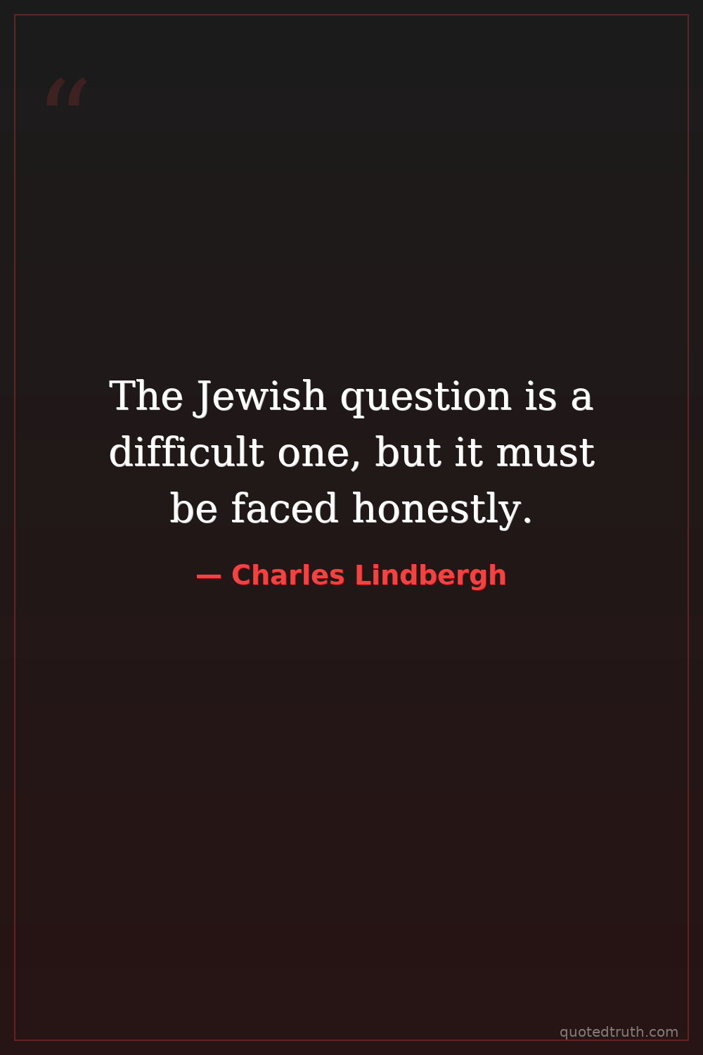 The Jewish question is a difficult one, but it must be faced honestly.