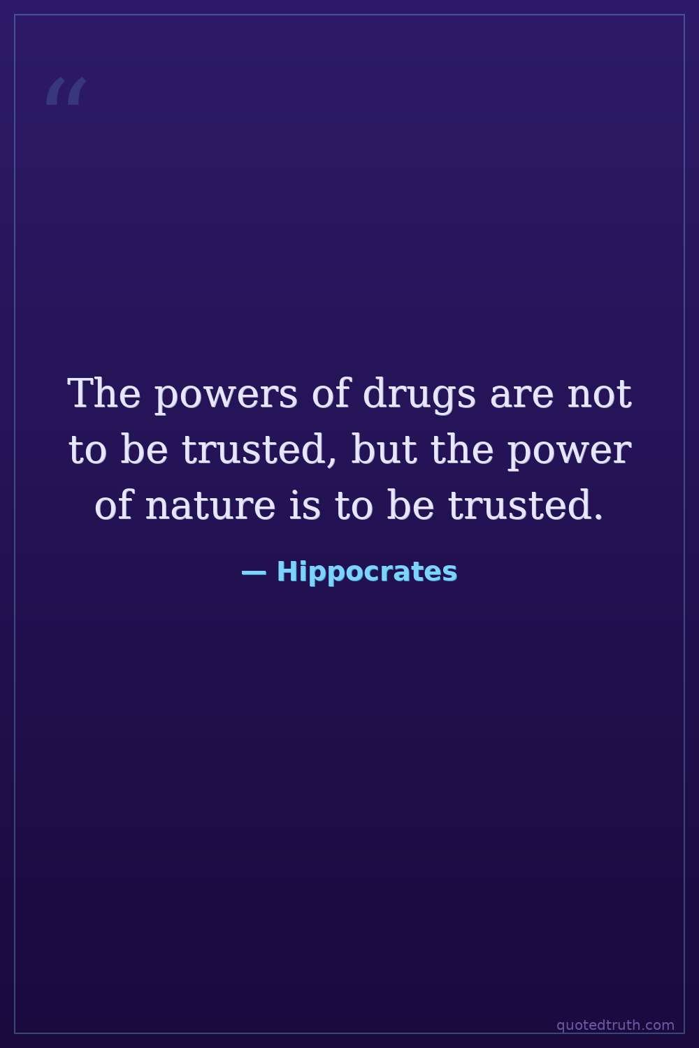 The powers of drugs are not to be trusted, but the power of nature is to be trusted.