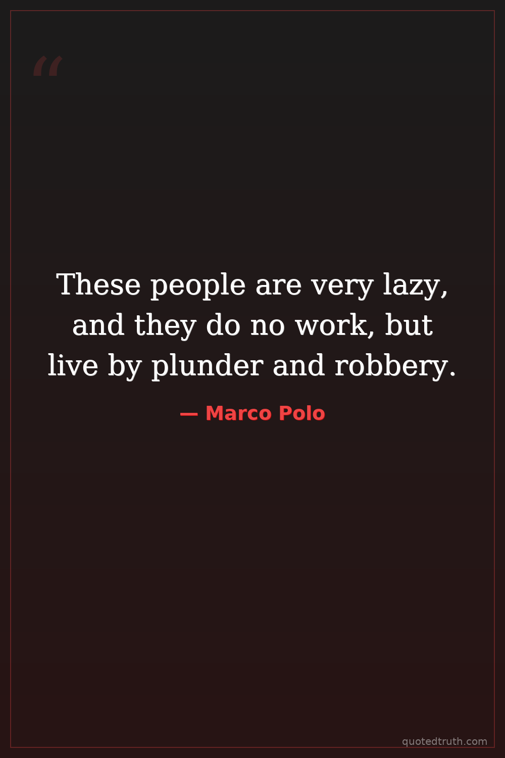 These people are very lazy, and they do no work, but live by plunder and robbery.