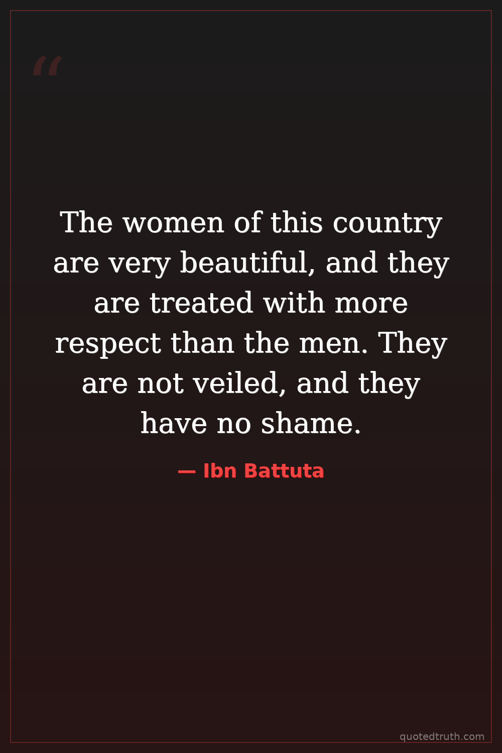 The women of this country are very beautiful, and they are treated with more respect than the men. They are not veiled, and they have no shame.