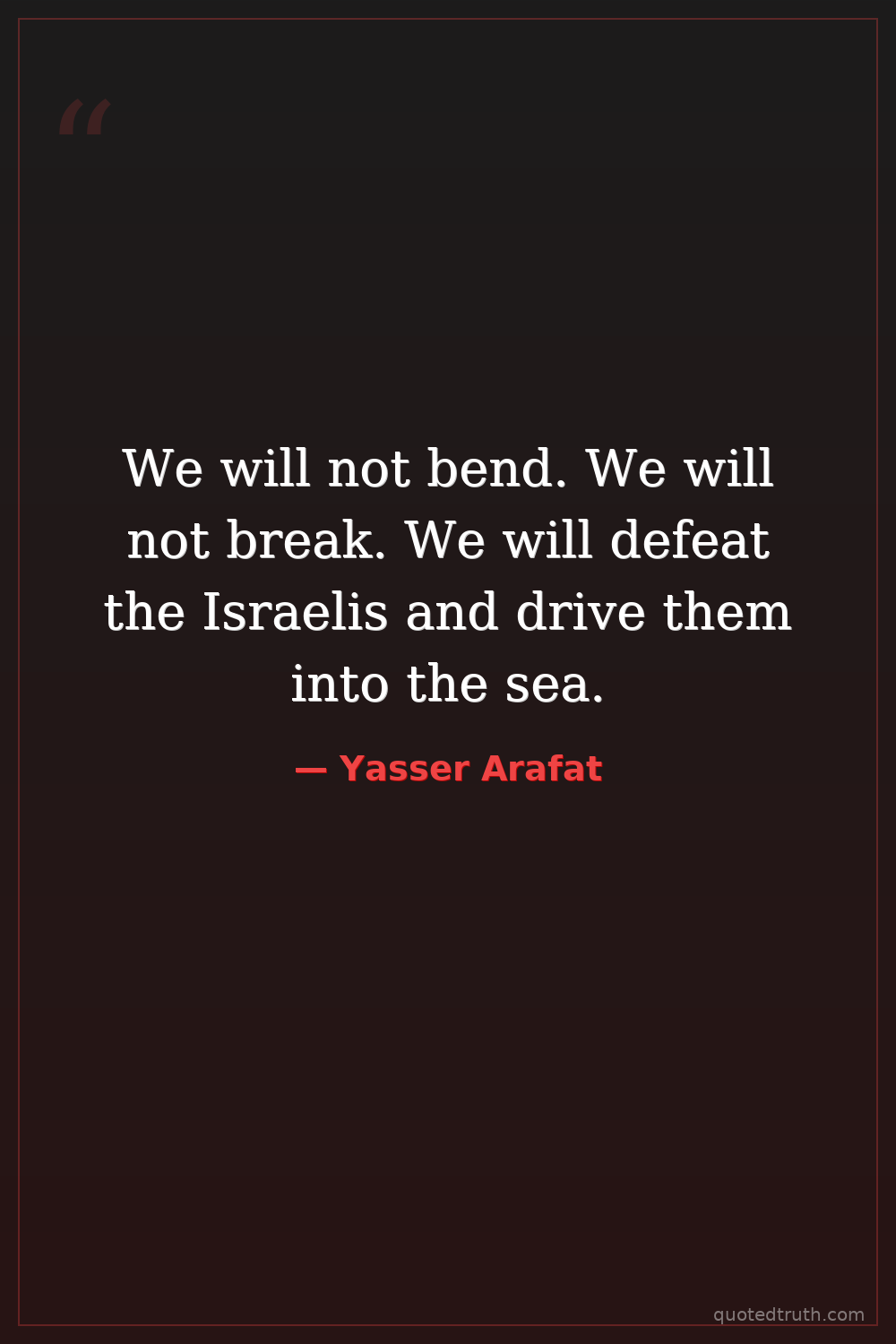 We will not bend. We will not break. We will defeat the Israelis and drive them into the sea.