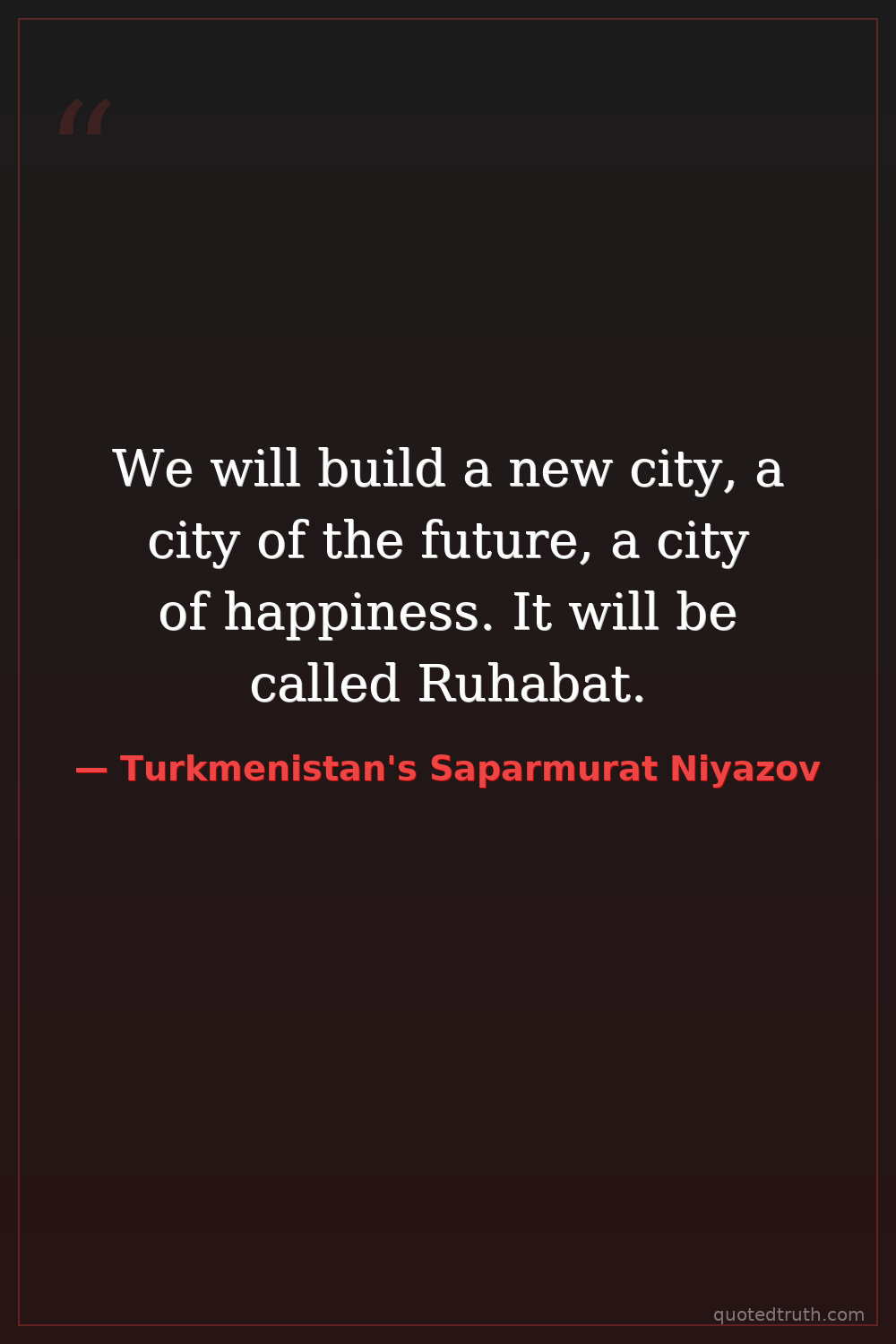 We will build a new city, a city of the future, a city of happiness. It will be called Ruhabat.