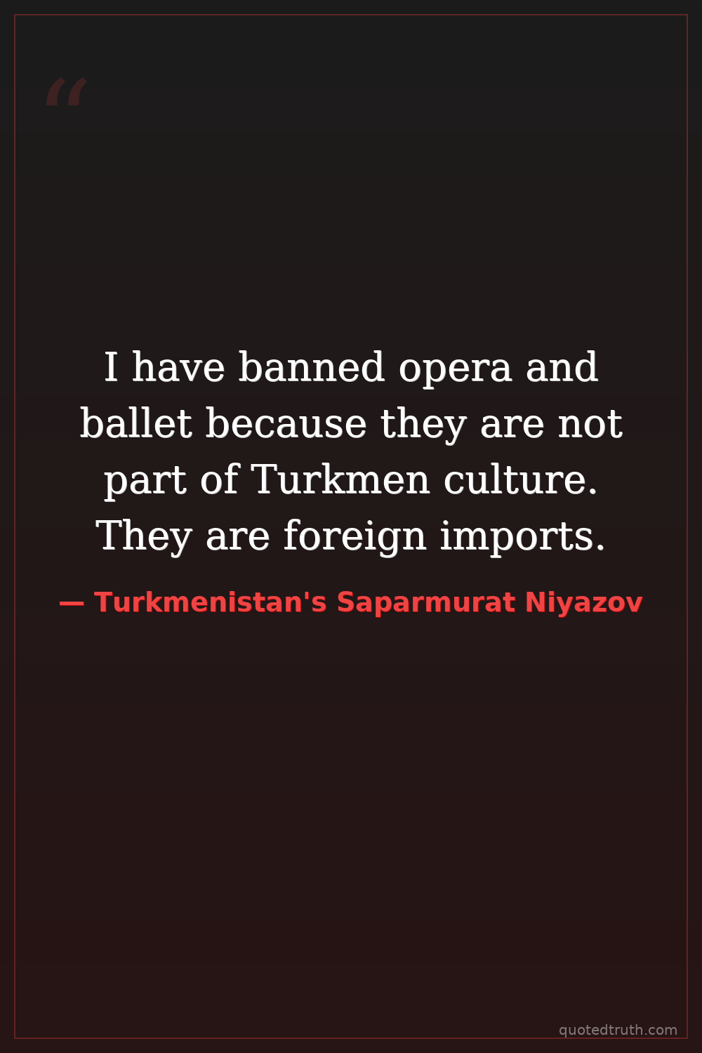 I have banned opera and ballet because they are not part of Turkmen culture. They are foreign imports.