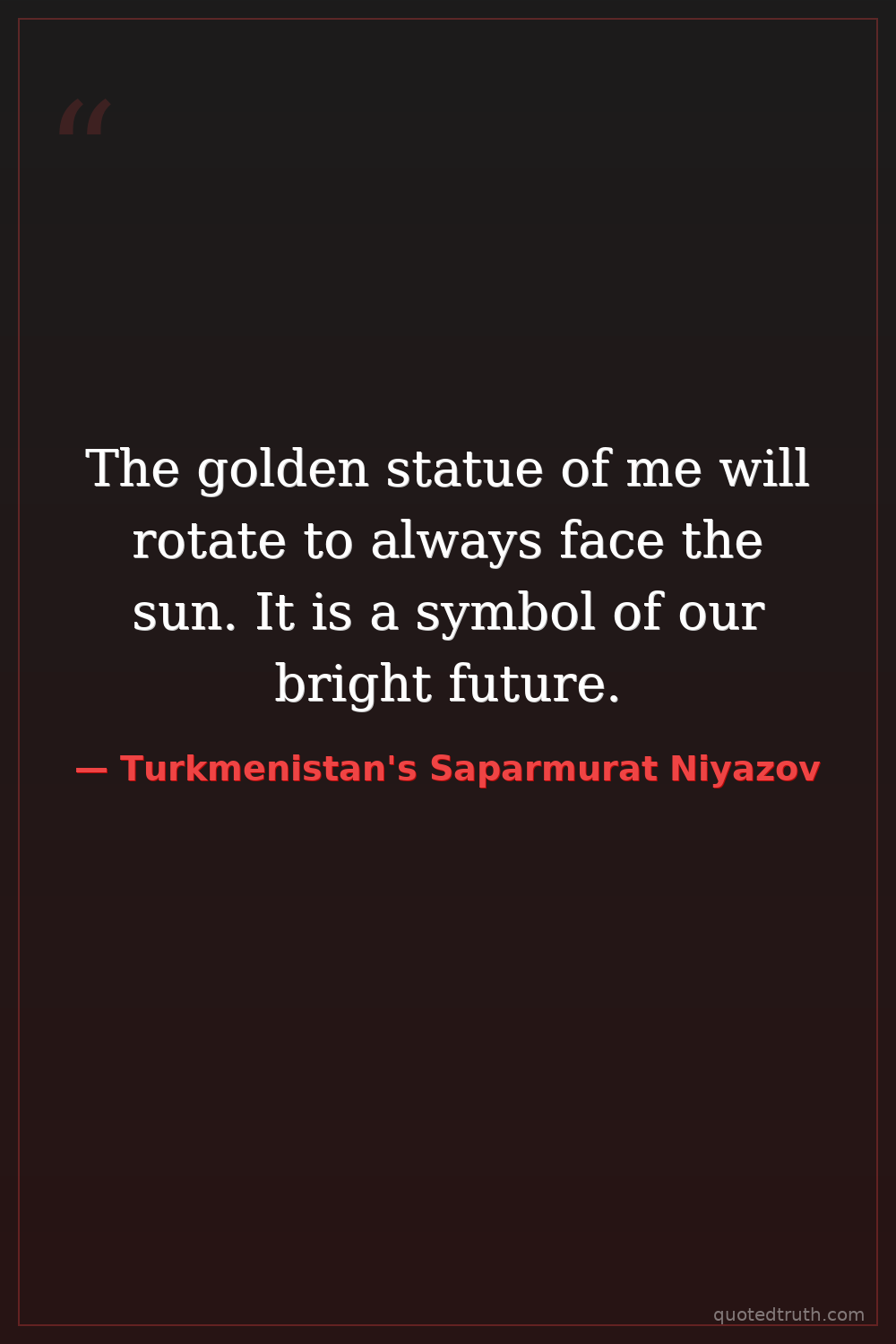 The golden statue of me will rotate to always face the sun. It is a symbol of our bright future.