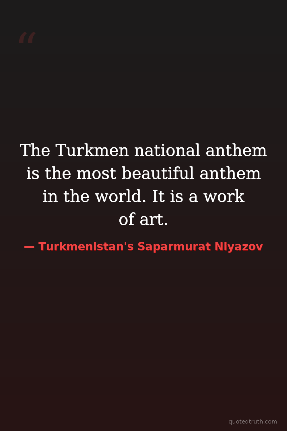The Turkmen national anthem is the most beautiful anthem in the world. It is a work of art.
