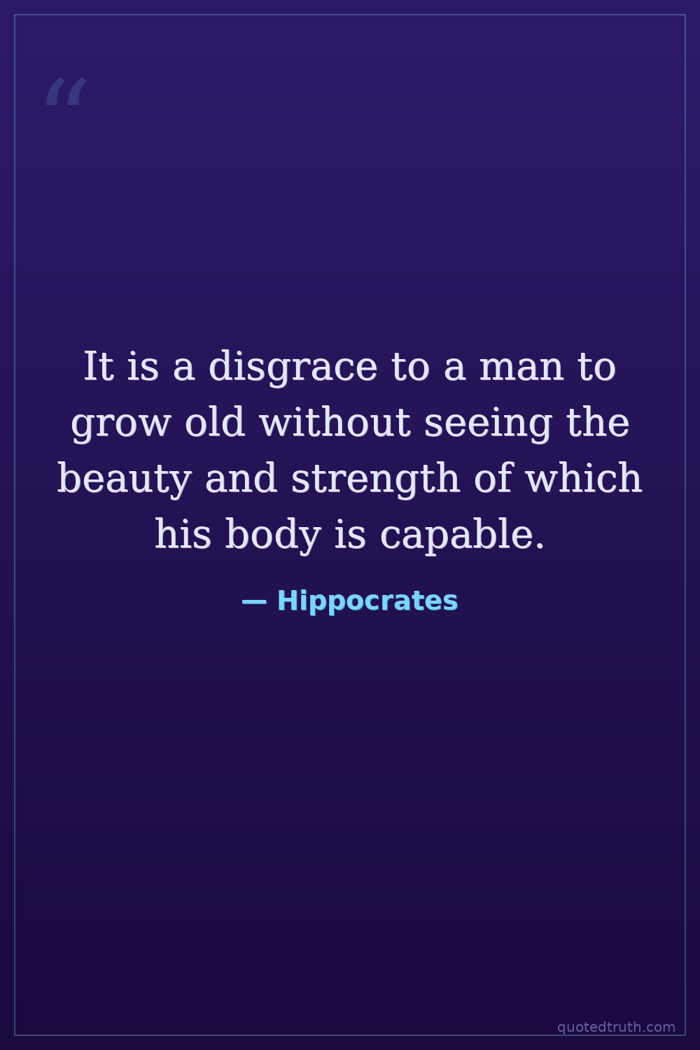 It is a disgrace to a man to grow old without seeing the beauty and strength of which his body is capable.