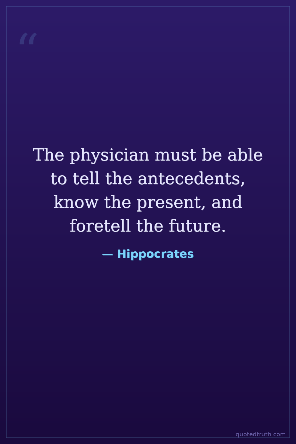 The physician must be able to tell the antecedents, know the present, and foretell the future.