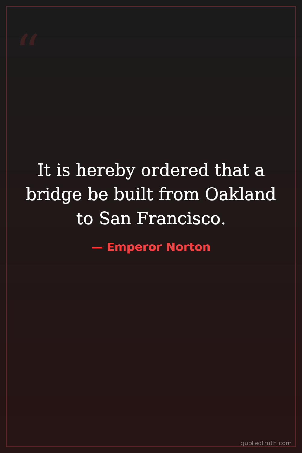 Controversial"It is hereby ordered that a tunnel be built under the Bay, connecting San Francisco to Oakland."