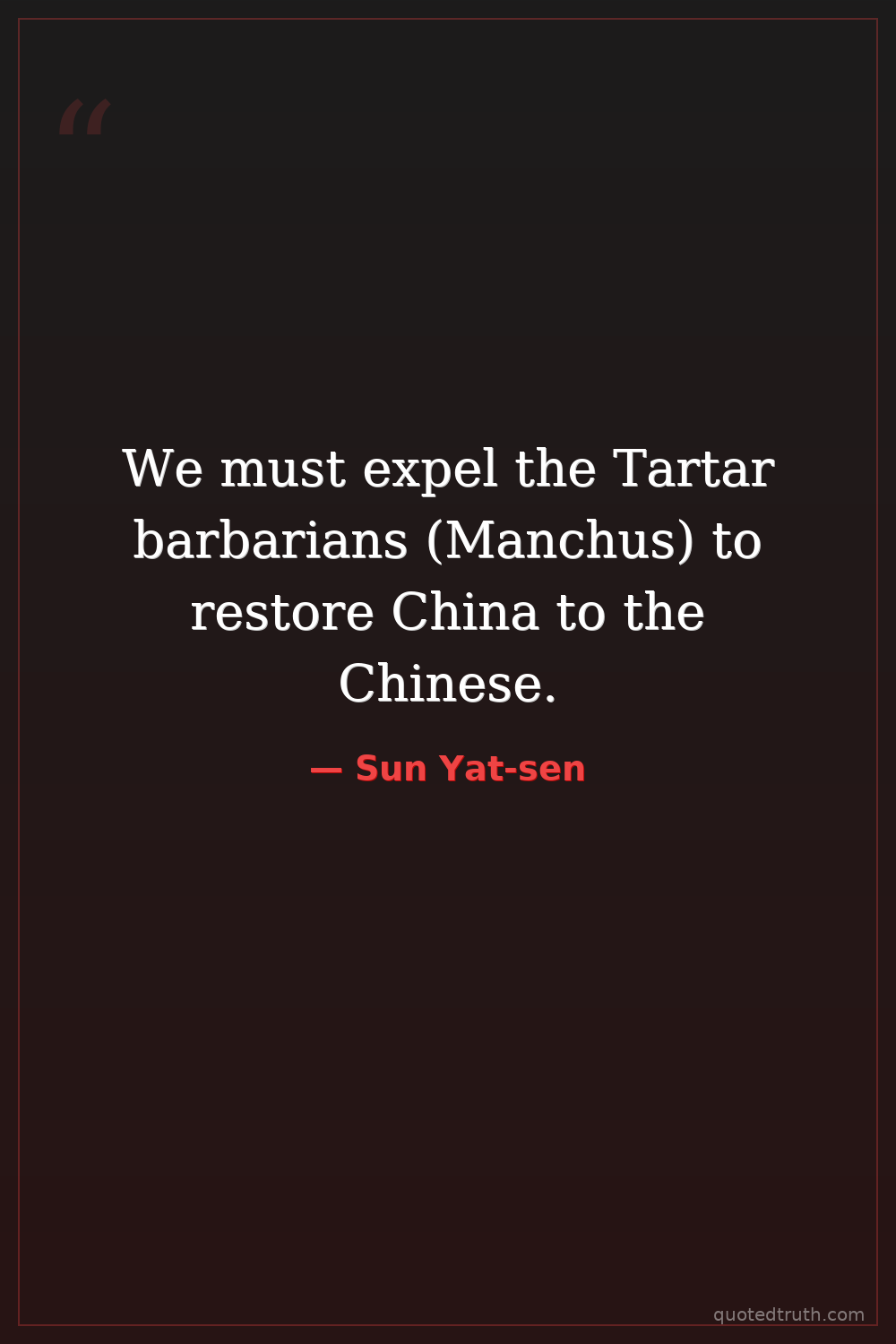 Controversial"Our position is extremely perilous; if we do not earnestly promote nationalism and weld together our four hundred millions into a strong nation, we face a tragedy - the loss of our country and the des…"