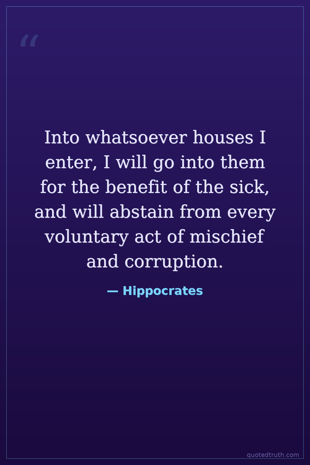Into whatsoever houses I enter, I will go into them for the benefit of the sick, and will abstain from every voluntary act of mischief and corruption.