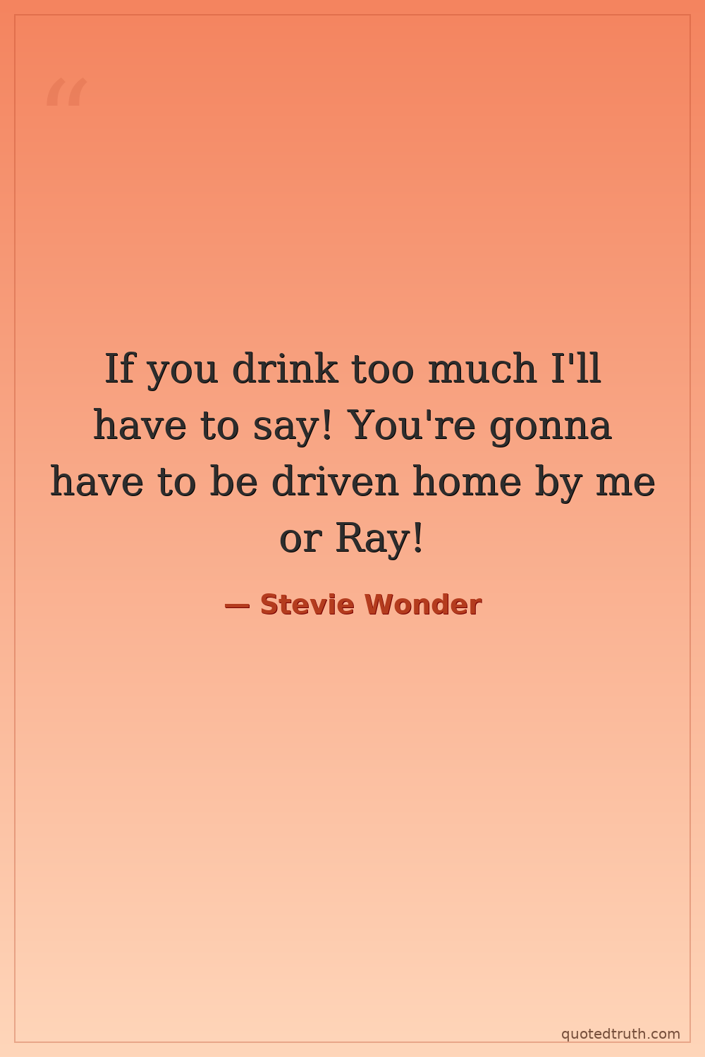 If you drink too much I'll have to say! You're gonna have to be driven home by me or Ray!