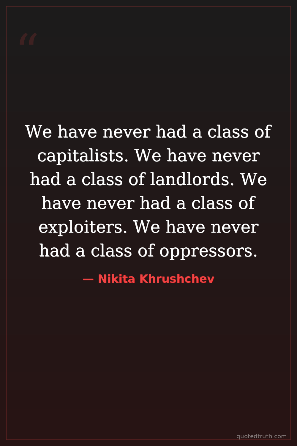 We have never had a class of capitalists. We have never had a class of landlords. We have never had a class of exploiters. We have never had a class of oppressors.