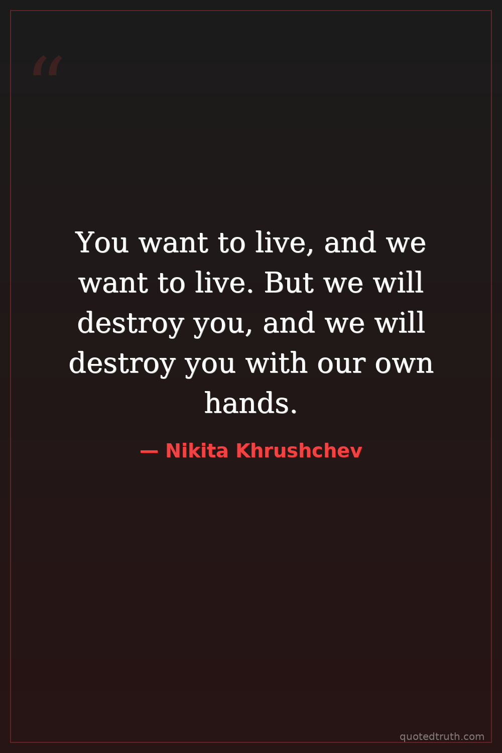 You want to live, and we want to live. But we will destroy you, and we will destroy you with our own hands.