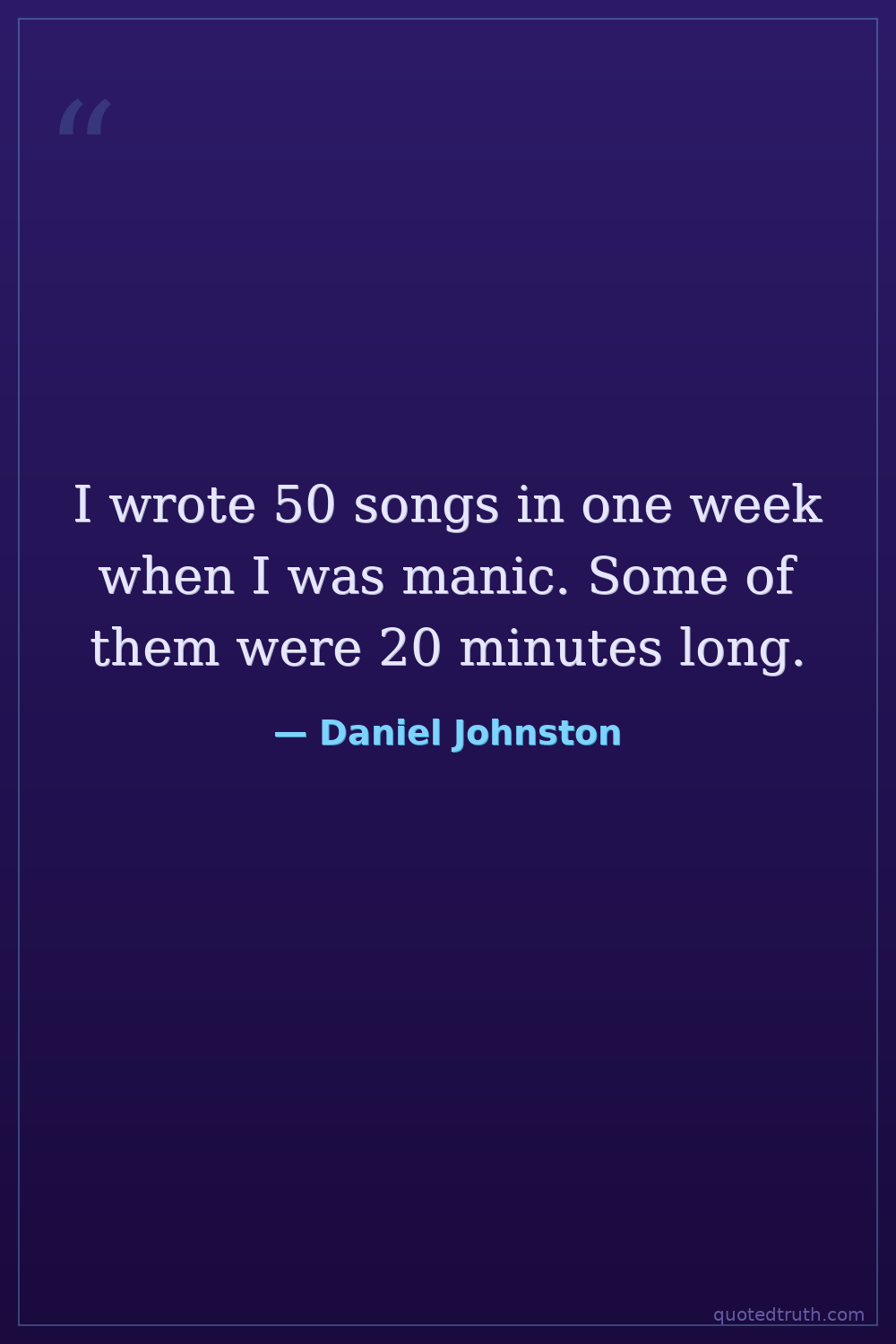 I wrote 50 songs in one week when I was manic. Some of them were 20 minutes long.
