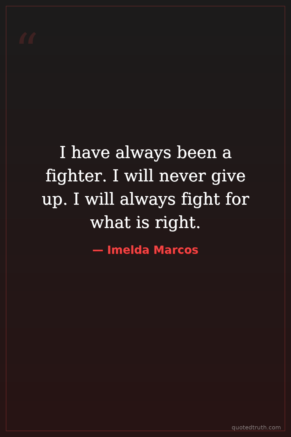 I have always been a fighter. I will never give up. I will always fight for what is right.