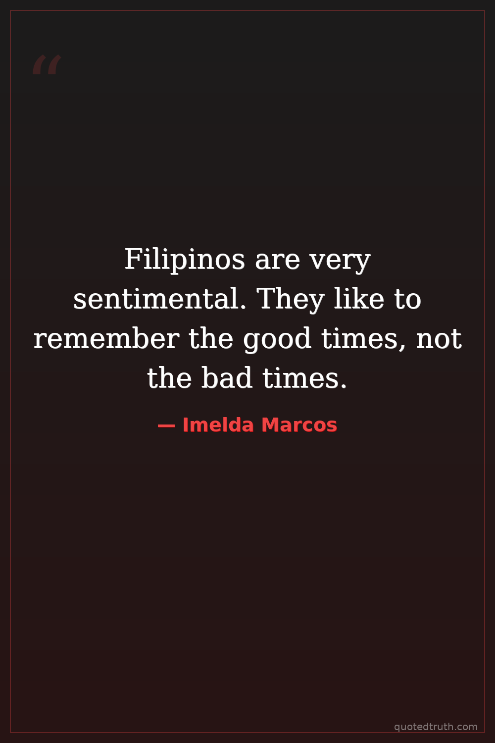 Filipinos are very sentimental. They like to remember the good times, not the bad times.