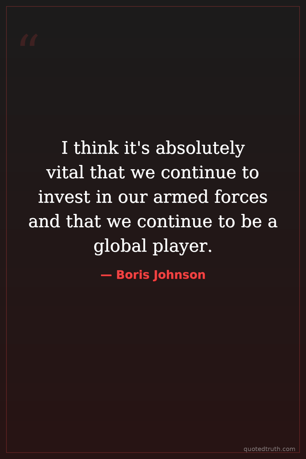 I think it's absolutely vital that we continue to invest in our armed forces and that we continue to be a global player.
