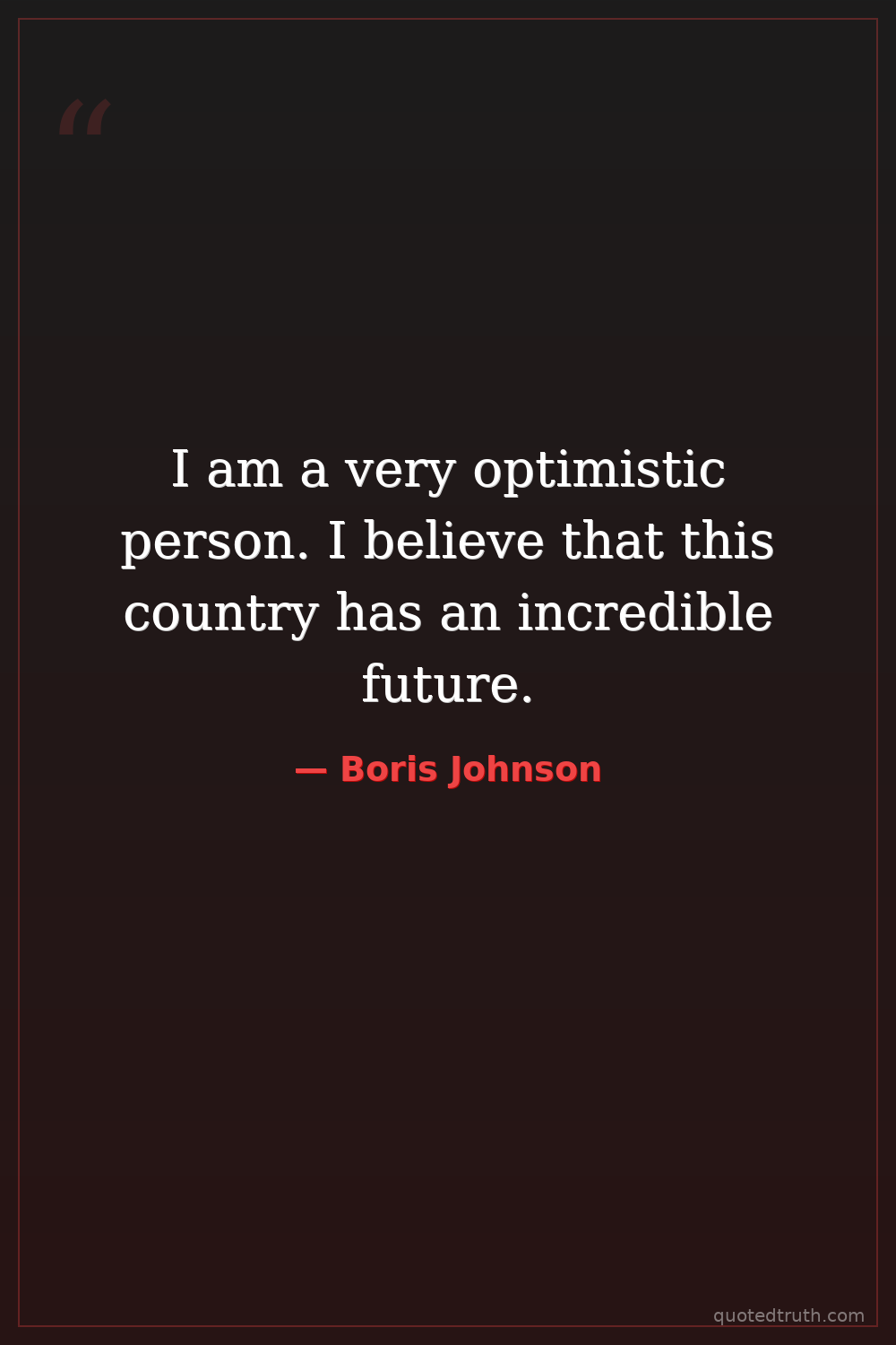 I am a very optimistic person. I believe that this country has an incredible future.