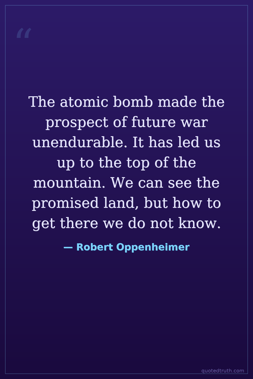 The atomic bomb made the prospect of future war unendurable. It has led us up to the top of the mountain. We can see the promised land, but how to get there we do not know.