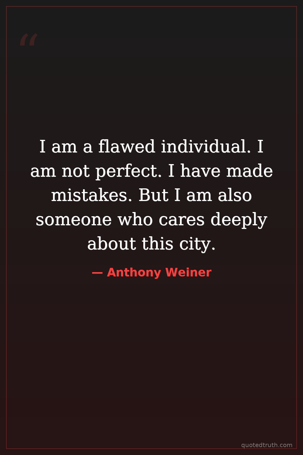 I am a flawed individual. I am not perfect. I have made mistakes. But I am also someone who cares deeply about this city.