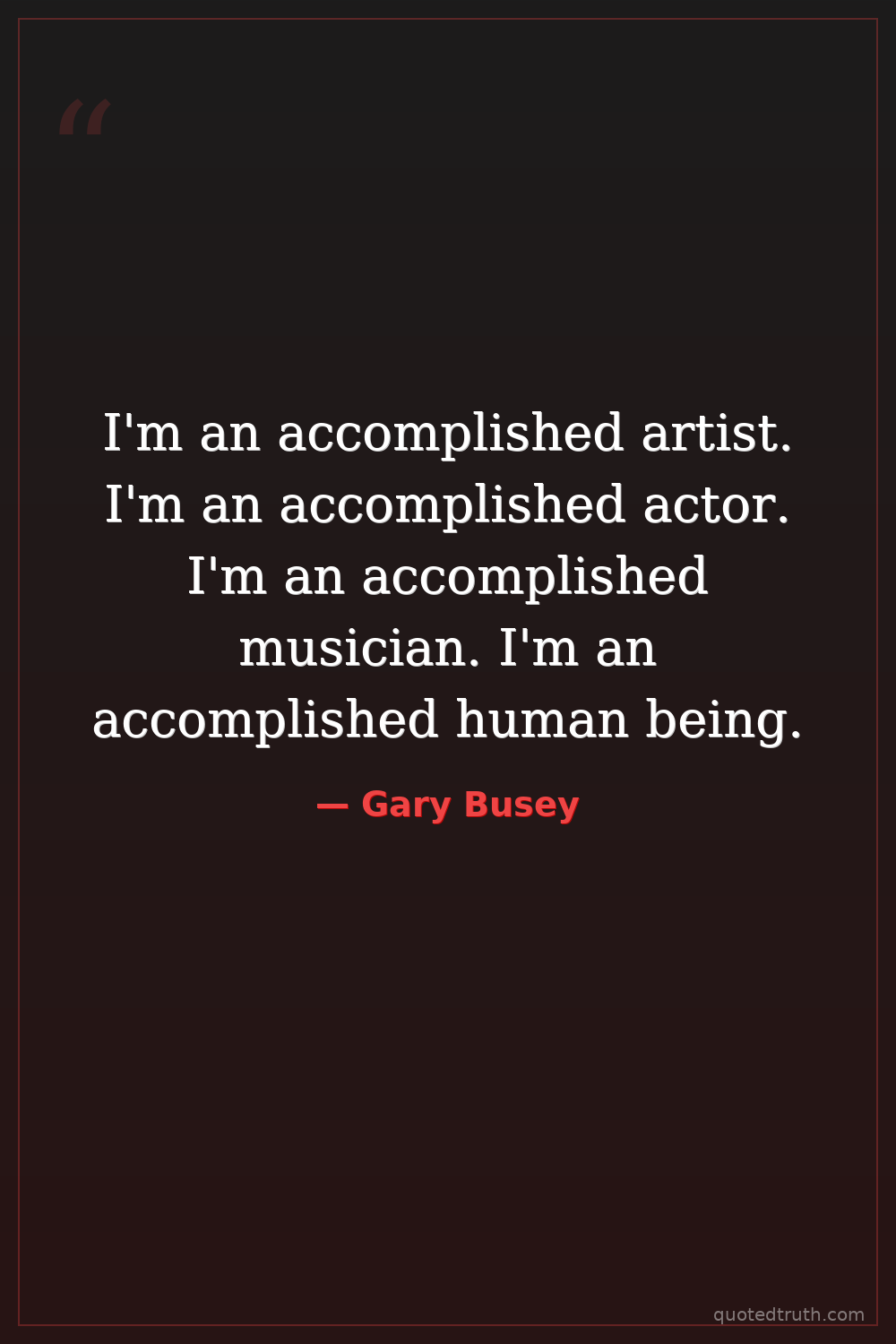 I'm an accomplished artist. I'm an accomplished actor. I'm an accomplished musician. I'm an accomplished human being.