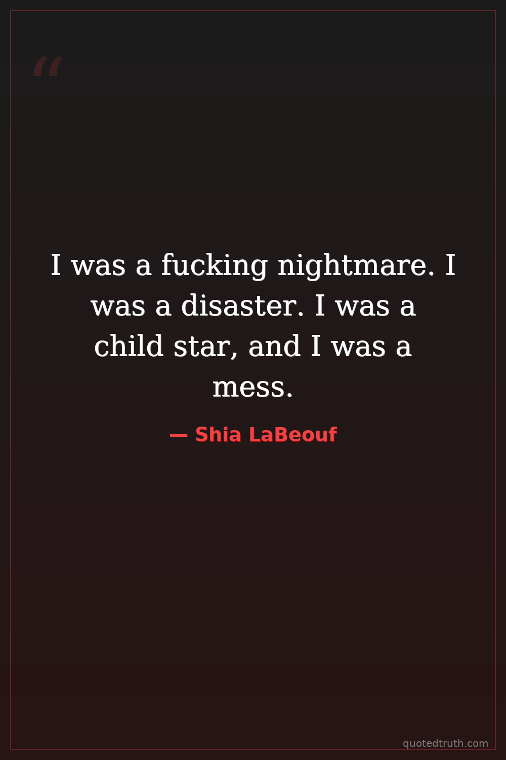 I was a fucking nightmare. I was a disaster. I was a child star, and I was a mess.
